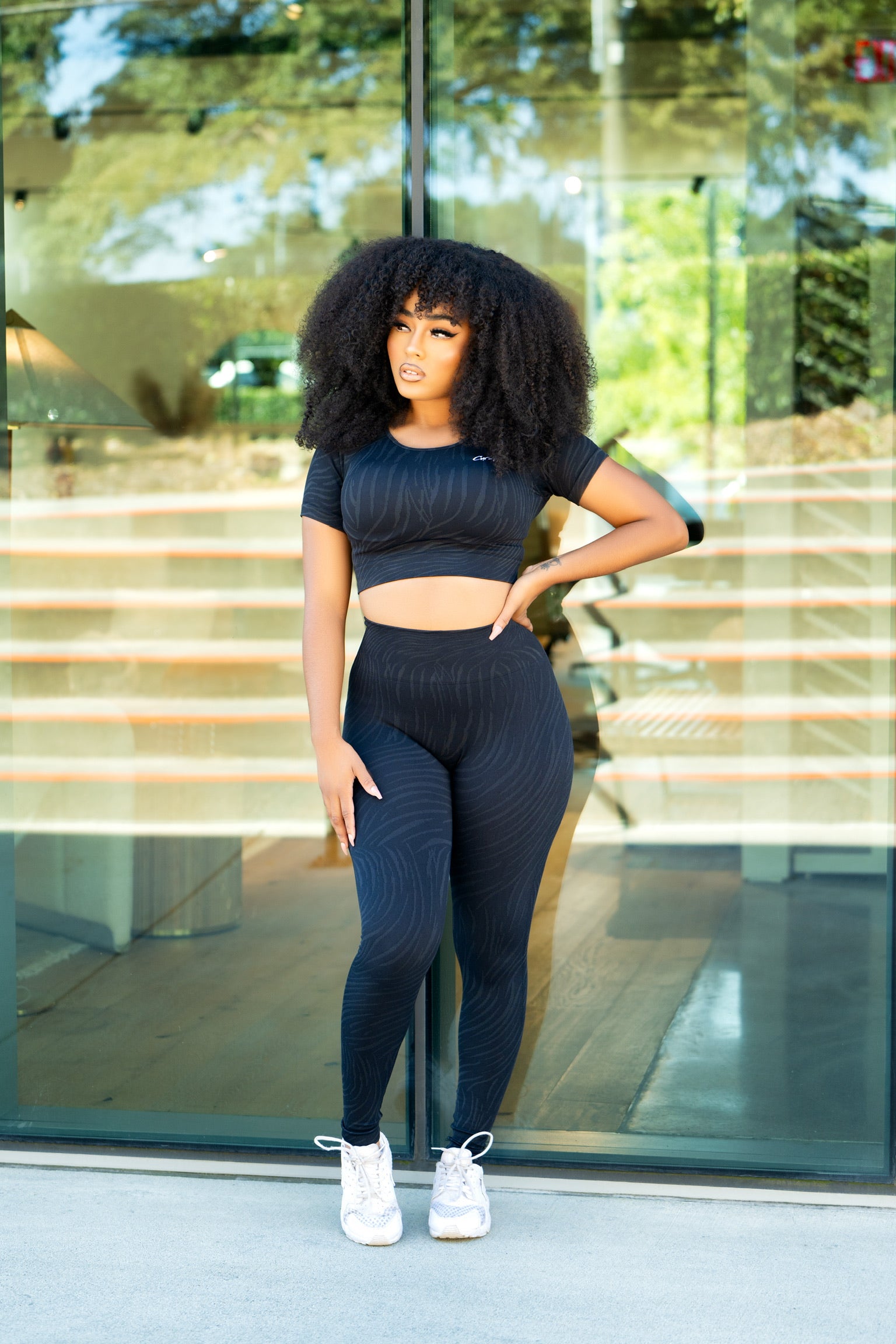 Crafted from premium, breathable fabric, this cropped top offers both comfort and performance. The moisture-wicking material keeps you dry and cool, while the four-way stretch ensures freedom of movement during even the most intense workouts.